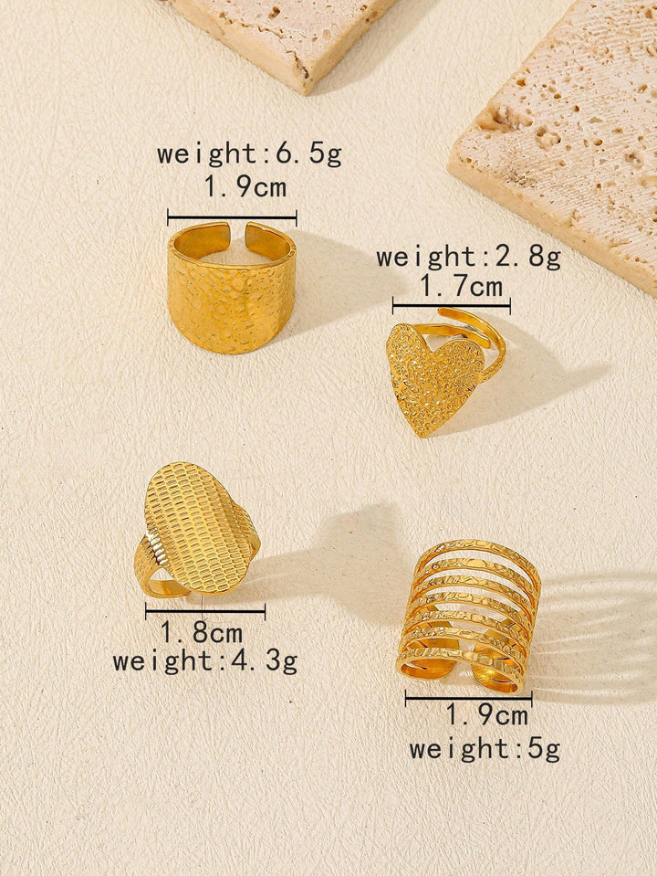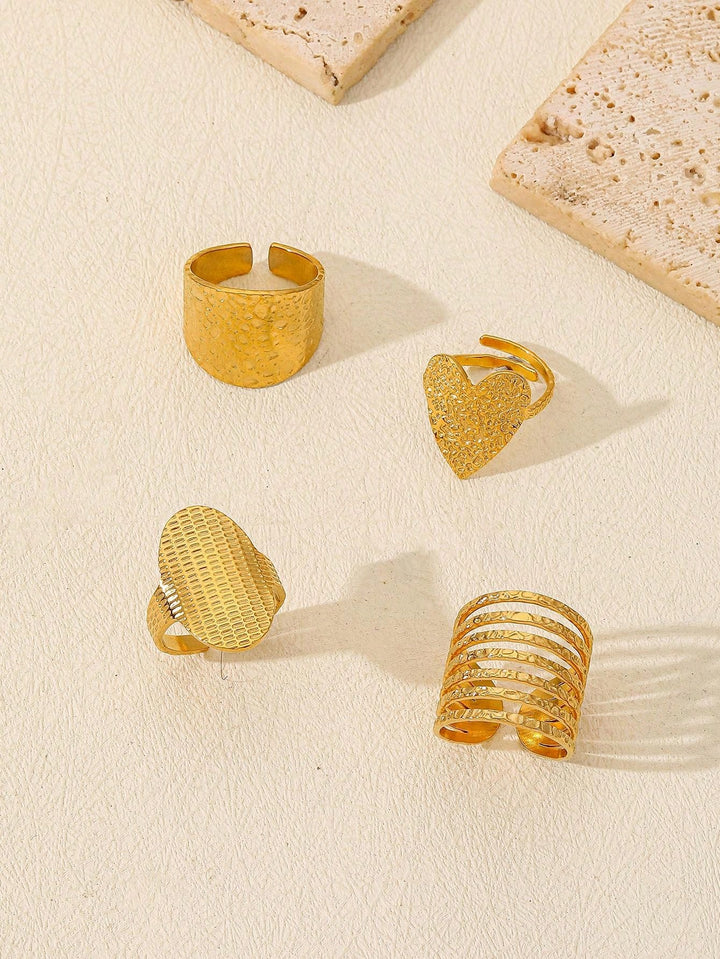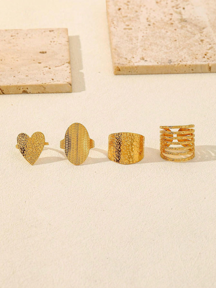 Shein - 4Pcs Stainless Steel Golden Fashion Exaggerated Women'S Open Ring, Suitable For Women'S Daily Matching Or Holiday Gifts