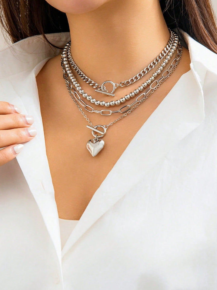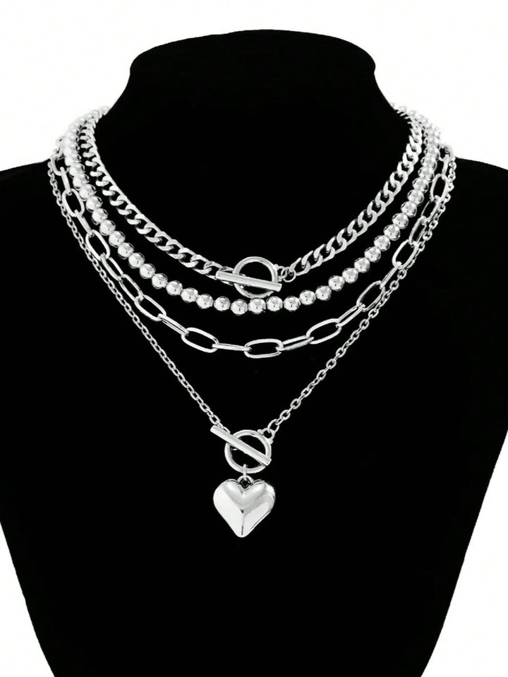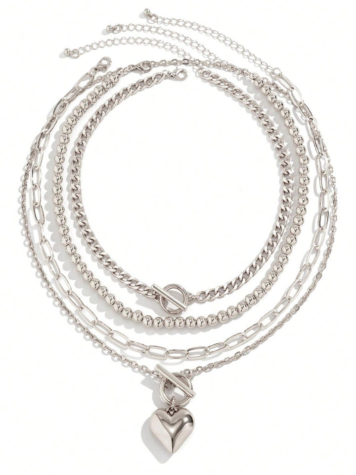 Shein - 4Pcs Vintage Necklaces, Love Heart Pendant Necklace Zinc Alloy Neck Chain, Simple Ot Clavicle Necklace For Women