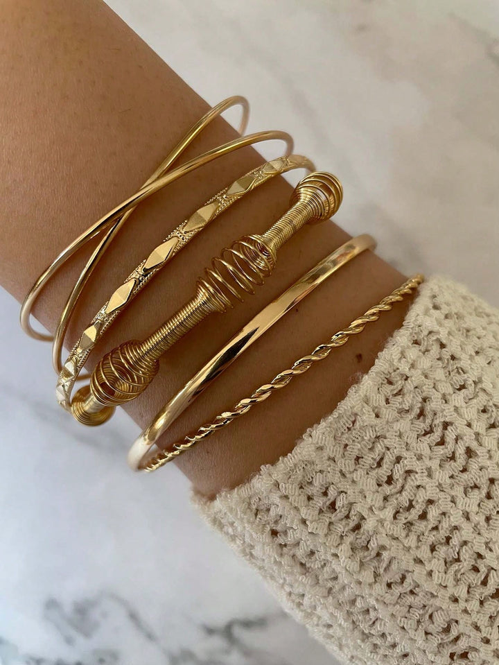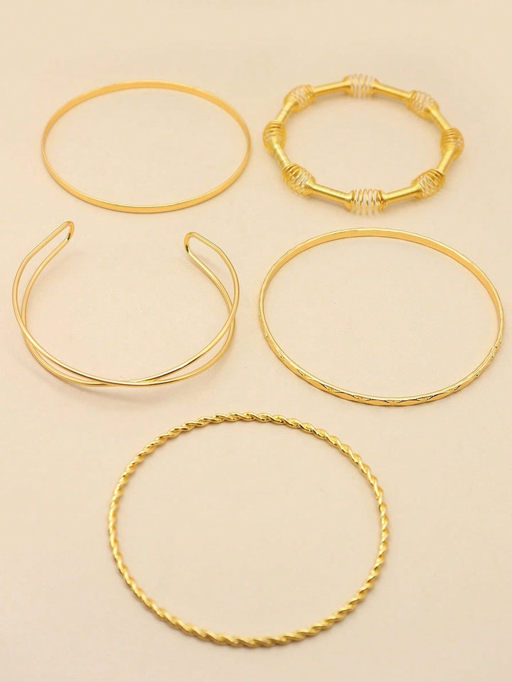 Shein - 5Pcs Basic Style Crossed Diamond Pattern Twisted Gold Bangle, Suitable For Men And Women Daily Wear