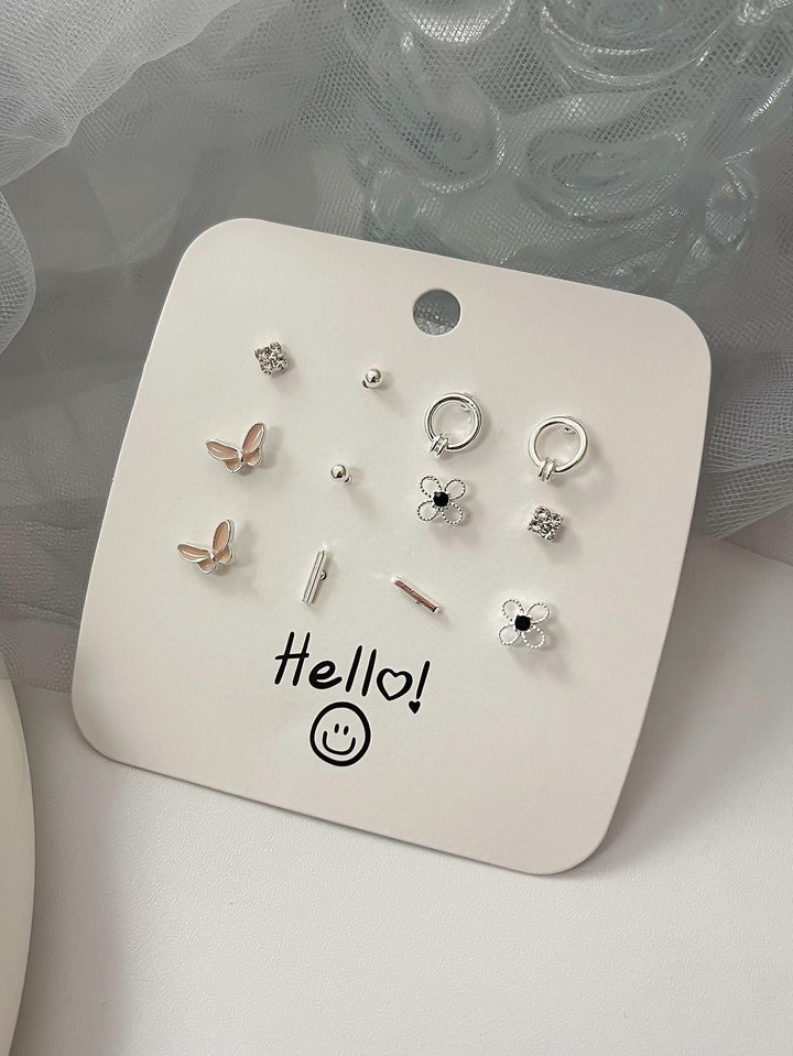 Shein - 6pairs/set Fashion Rhinestone Flower & Butterfly Shaped Stud Earrings For Women For Daily Decoration