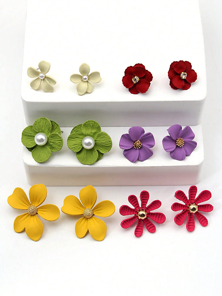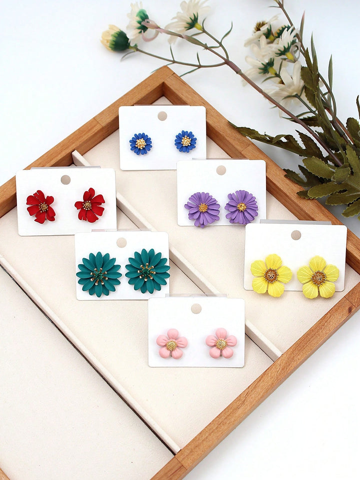 Shein - 6pairs/set Flower Decor Stud Earrings