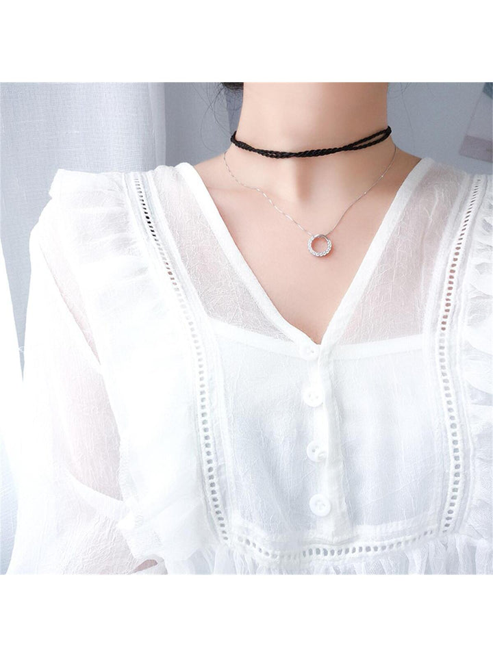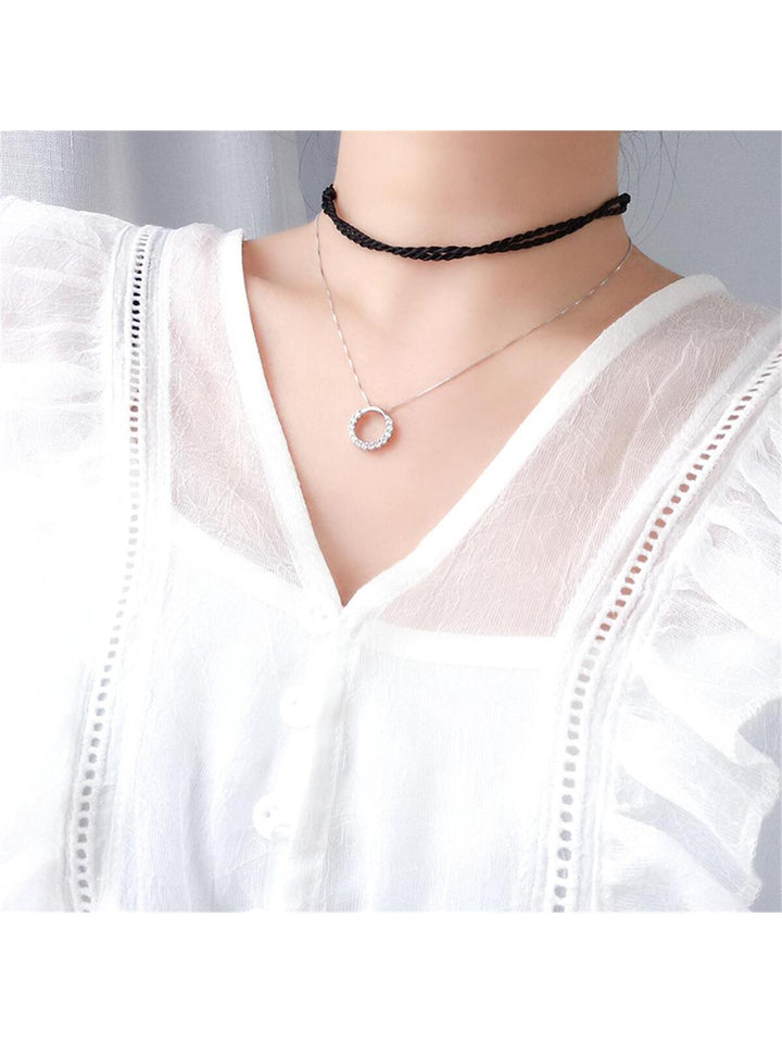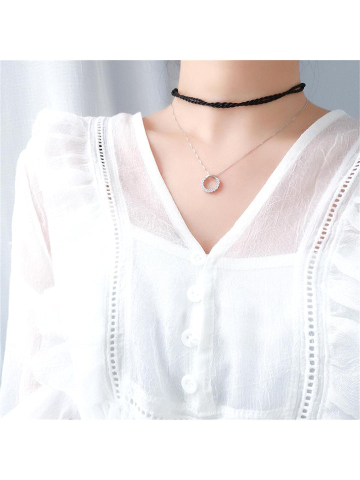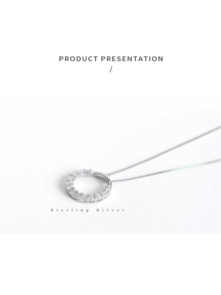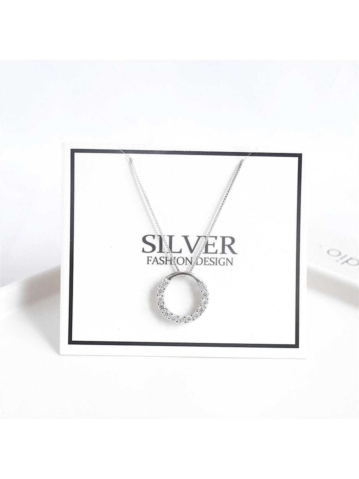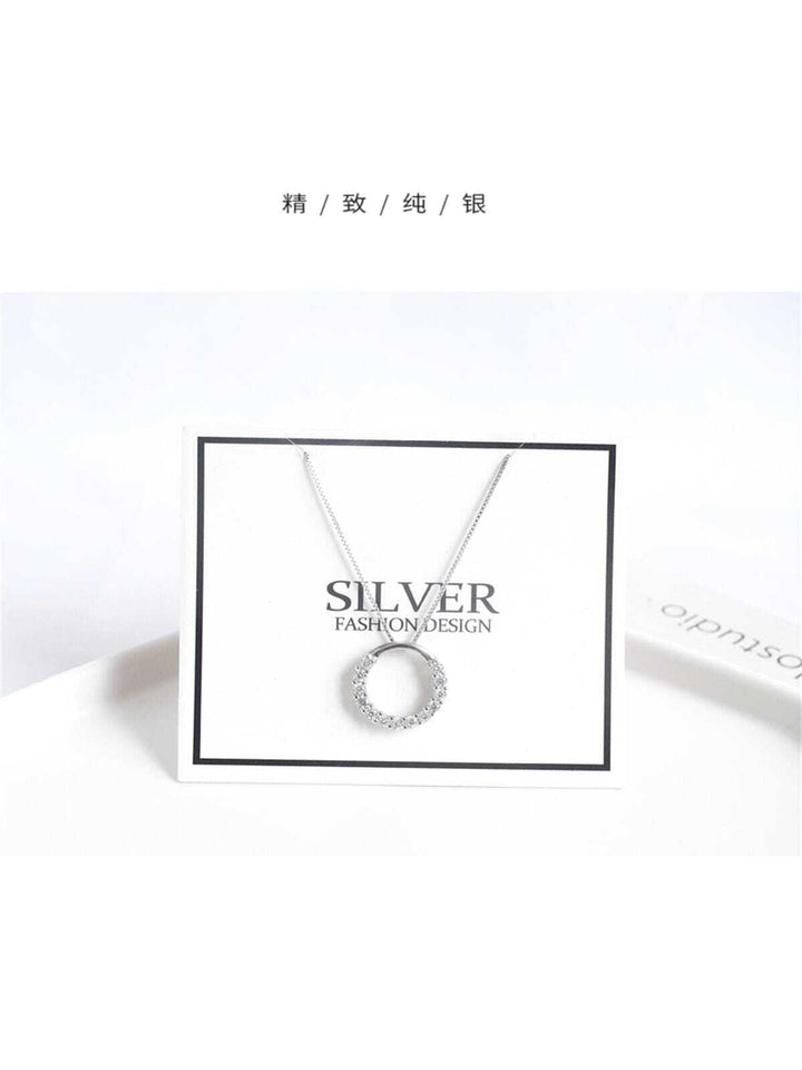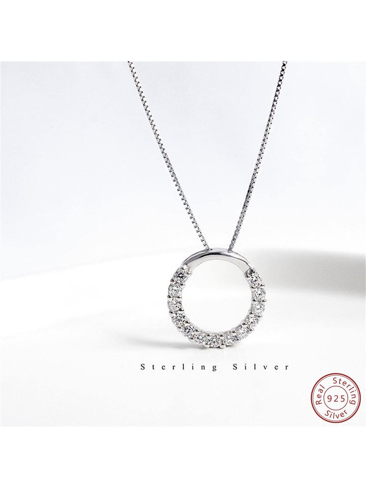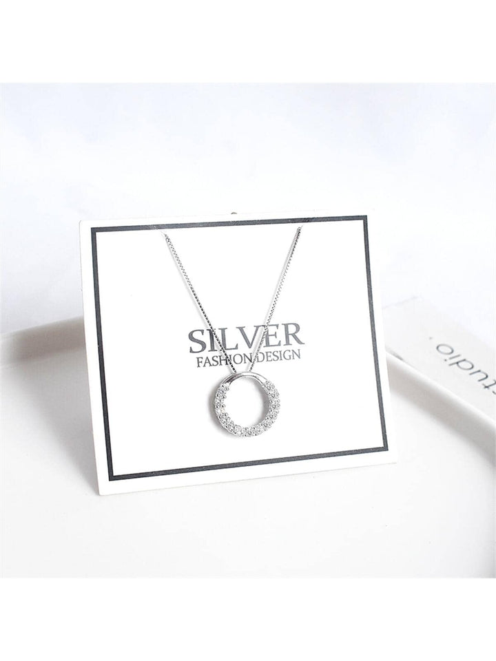 Shein - 925 Sterling Silver Inlaid Circle Pendant Necklace - High-grade Fashion Sterling Silver Jewelry Chain For Women, Ideal Gift For Girlfriend