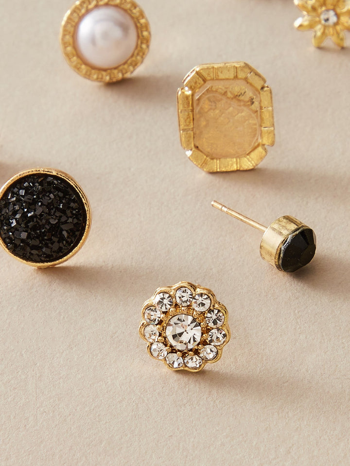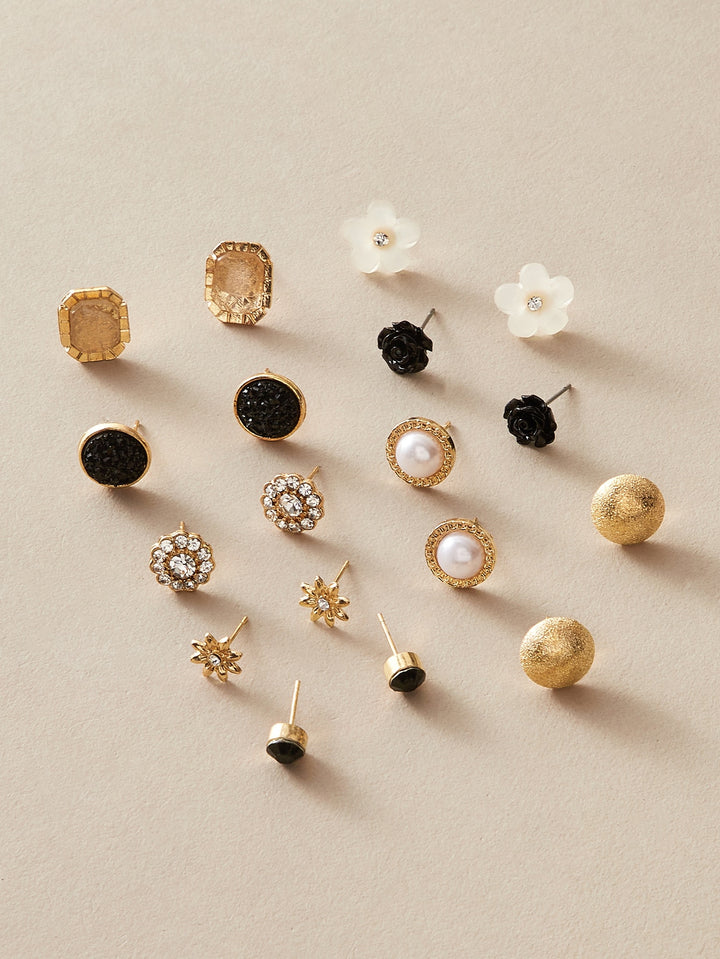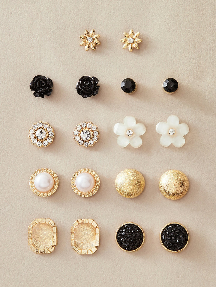Shein - 9pairs Rhinestone Floral Stud Earrings
