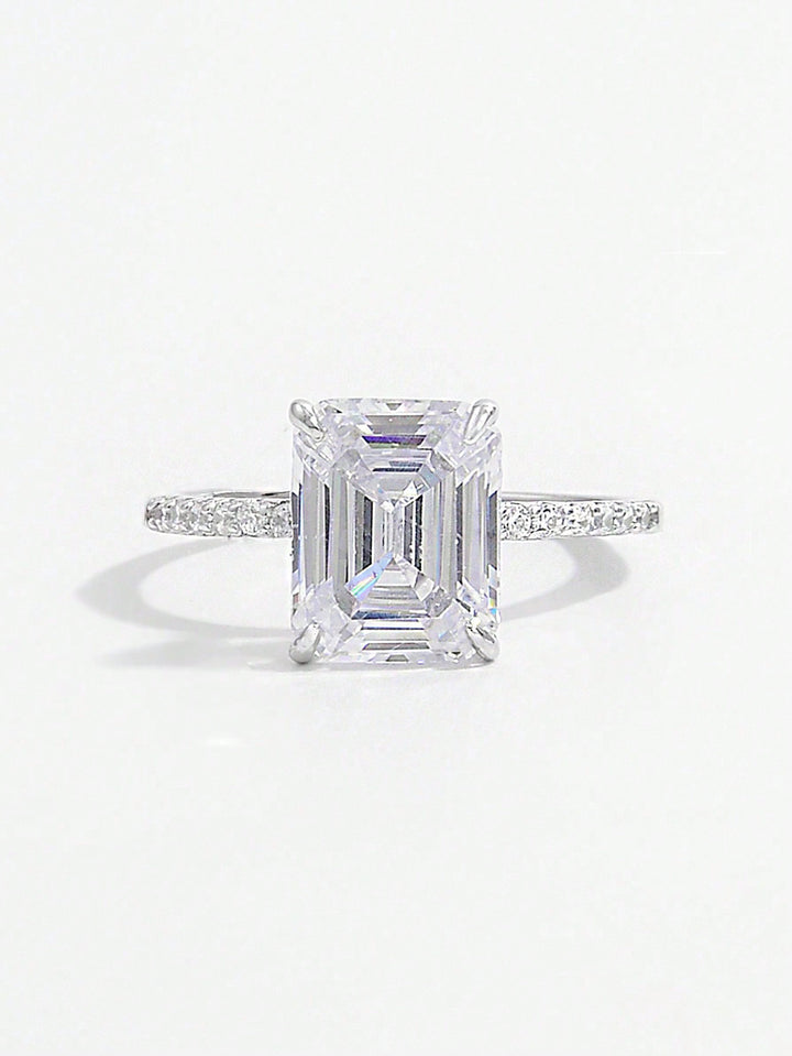 Shein - A classic, gorgeous, noble, elegant, generous and romantic 925 silver artificial cubic zirconia rectangular main stone ring