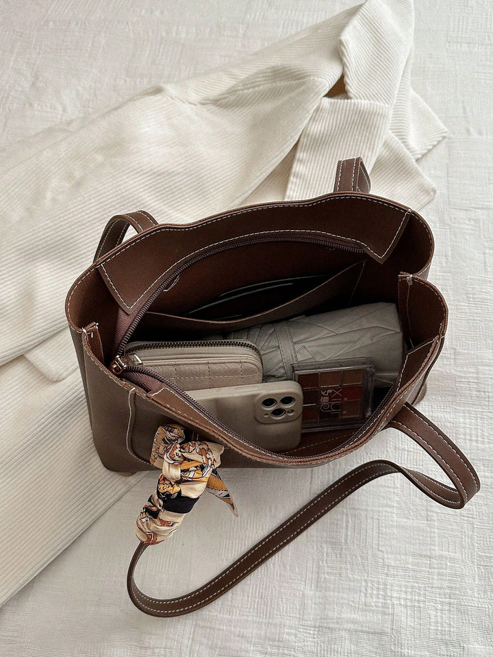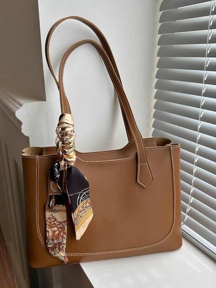 Shein - A Fashionable, Casual, And Minimalist Shopping Bag With A Fashionable Scarf And A Shoulder Tote Bag, Suitable For Shopping