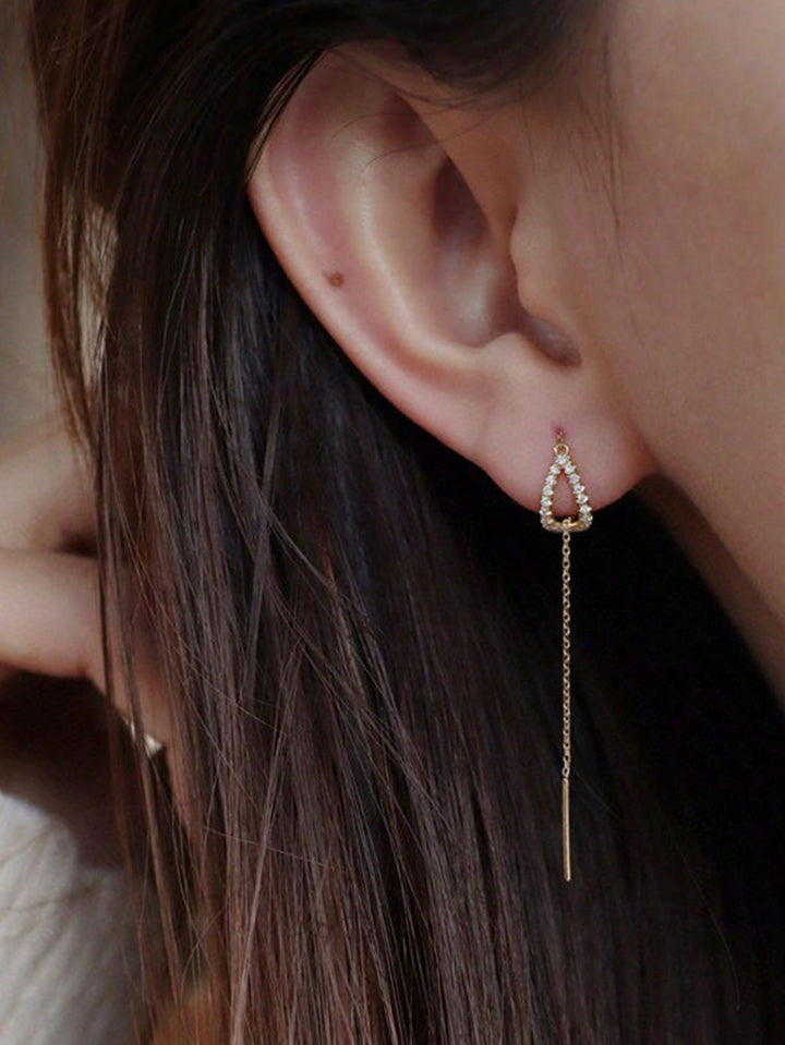 Shein - A pair of Elegant Exquisite Luxury S925 Sterling Silver Drip Long Tassels Ear Line Earring Earrings for Women Daily Wear for Girlfriends Gift