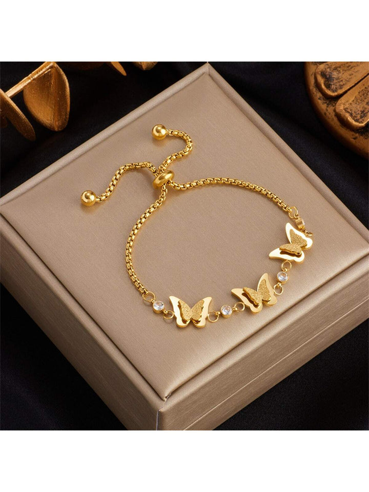 Shein - A Small, Simple And Versatile Personalized Fashion Retro Gold Pull Three-Dimensional Butterfly Chain Accessories Bracelet For Women, Suitable For Daily Wear