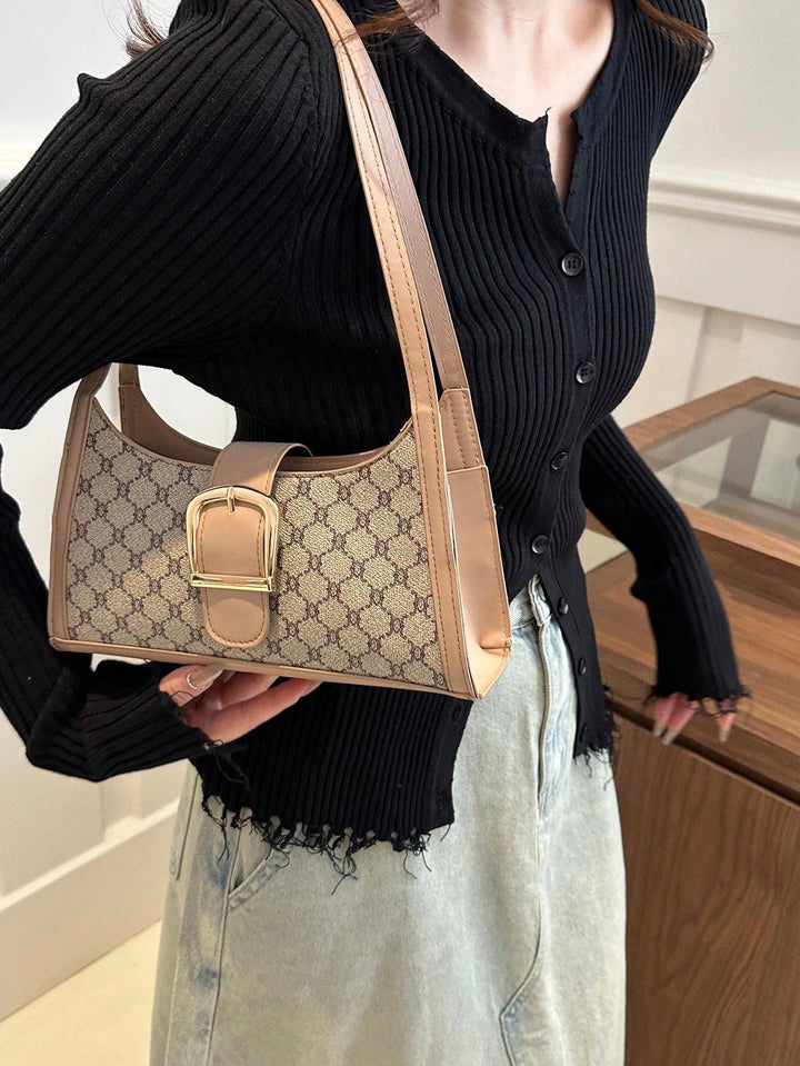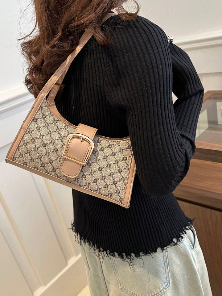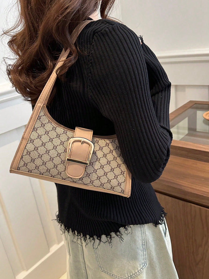 Shein - A Women'S Retro Fashion Color Contrast Shoulder Bag, Elegant Light Luxury Underarm Bag Pu, Casual Small Square Bag, Suitable For Women'S Daily Use