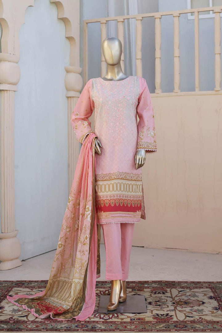 Affifa by Bin Saeed Stitched 3 Piece Embroidered Lawn Vol-01 Collection'2023-F-0419-Pink
