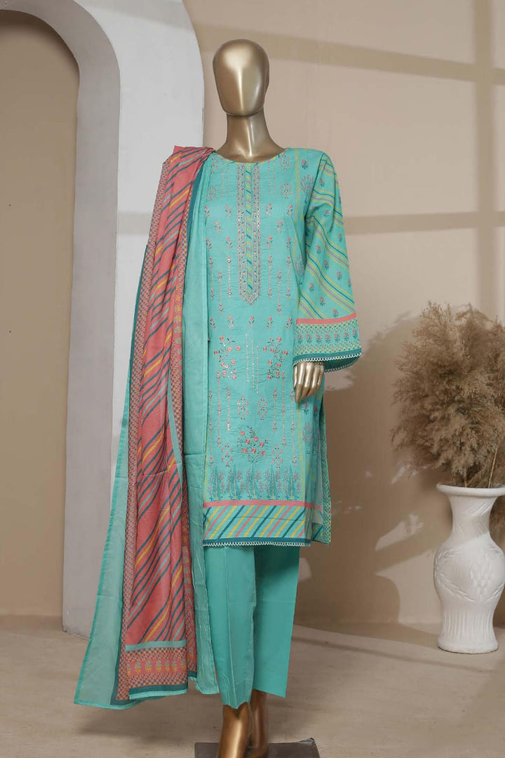 Affifa by Bin Saeed Stitched 3 Piece Embroidered Lawn Vol-02 Collection'2023-CF-0064-Ferozi