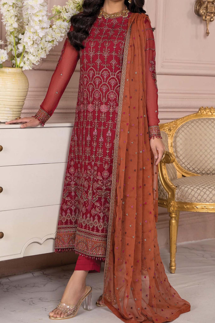 Afreen by Zarif Unstitched 3 Piece Festive Formal Collection'2023-ZA-08-Garnet
