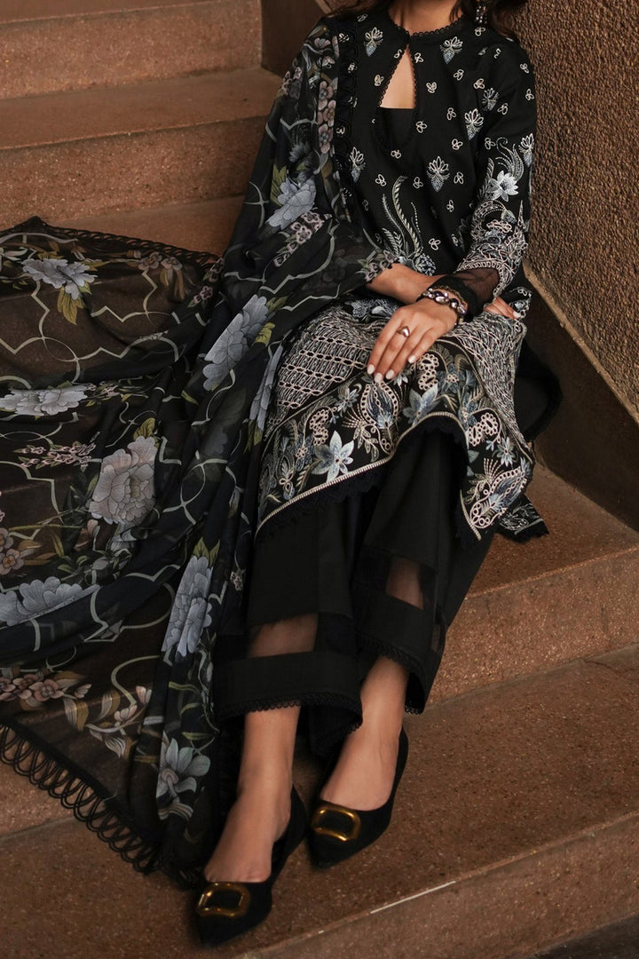 Afrozeh Unstitched 3 Piece Festive Emb Chikankari Lawn Collection'2024-ALV-05-Caviar