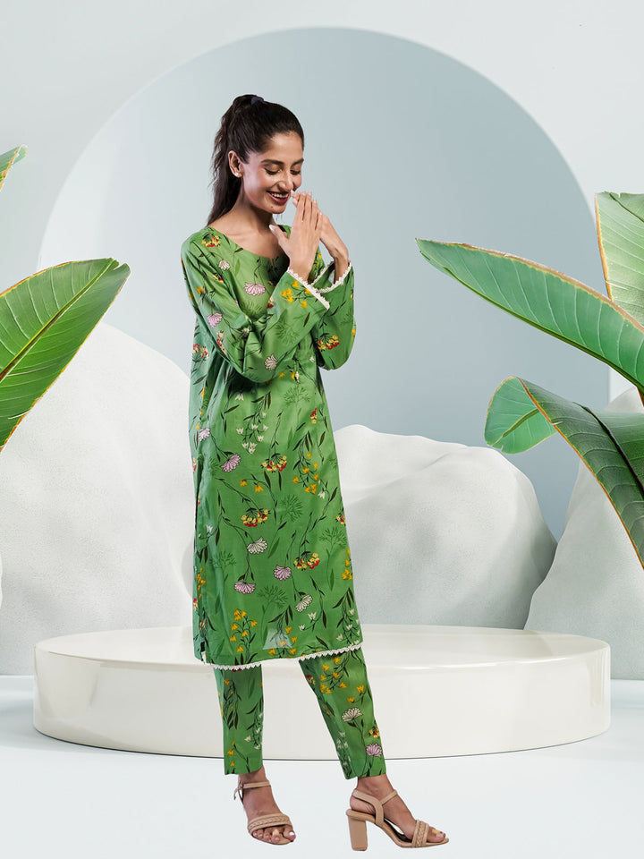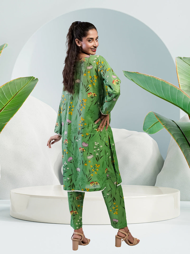 Ahlam Soft Cambric Stitched-Pastel Green Co-ord Set Collection'2024