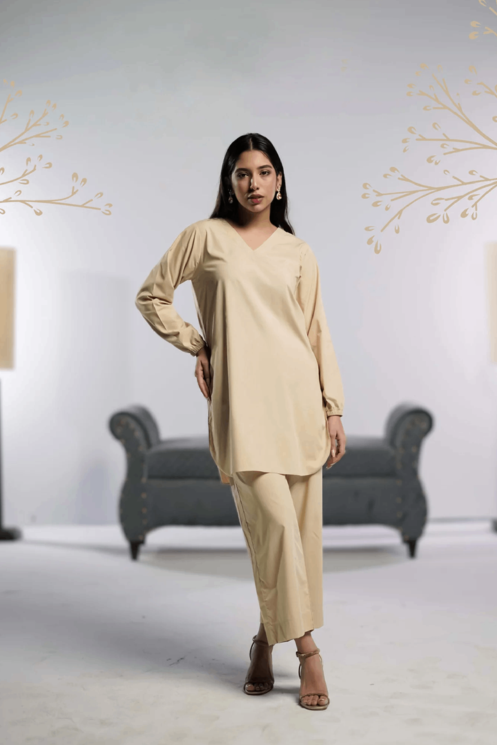 The Beige Bliss is designed for those who appreciate timeless fashion and bold statements in simplicity. Whether dressing up for a special occasion or enjoying a chic day out, this set offers unparalleled comfort and versatility.