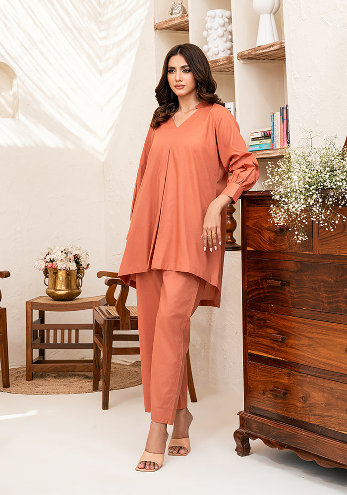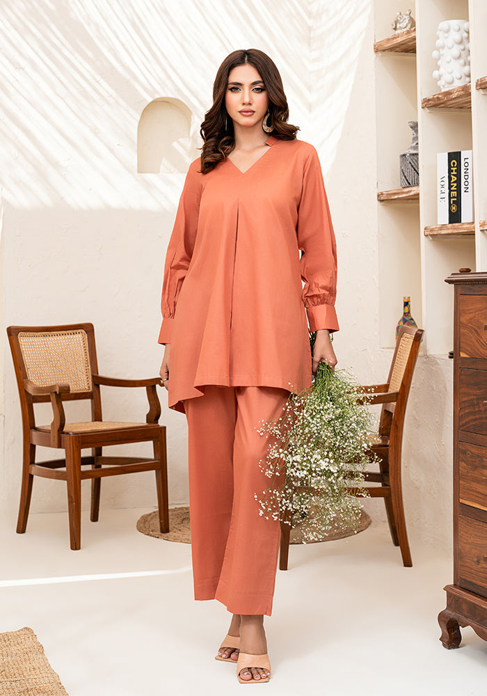 Amal Stitched Co Ords Basics Collection-Tangerine