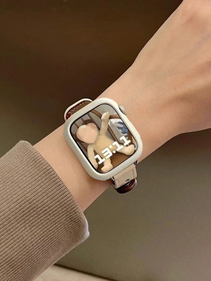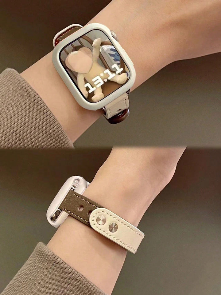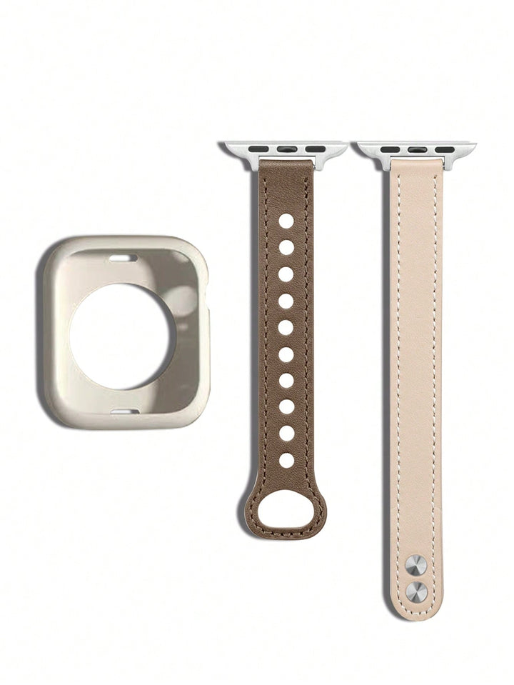 Shein - Apricot & Gray Watch Strap And Watch Case 2pcs Combination, Creative & Fashionable Watch