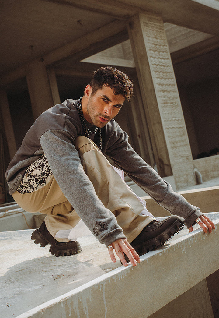 Redefine luxury casualwear with this impeccably crafted sweatshirt, designed for those who set trends, not follow them. Made from premium cotton fleece, it features sleek paneling and a micro-ribbed neckline for an elevated style. The silicone-printed branding on the front body delivers a bold yet refined statement, perfect for the modern connoisseur of fashion-forward style.