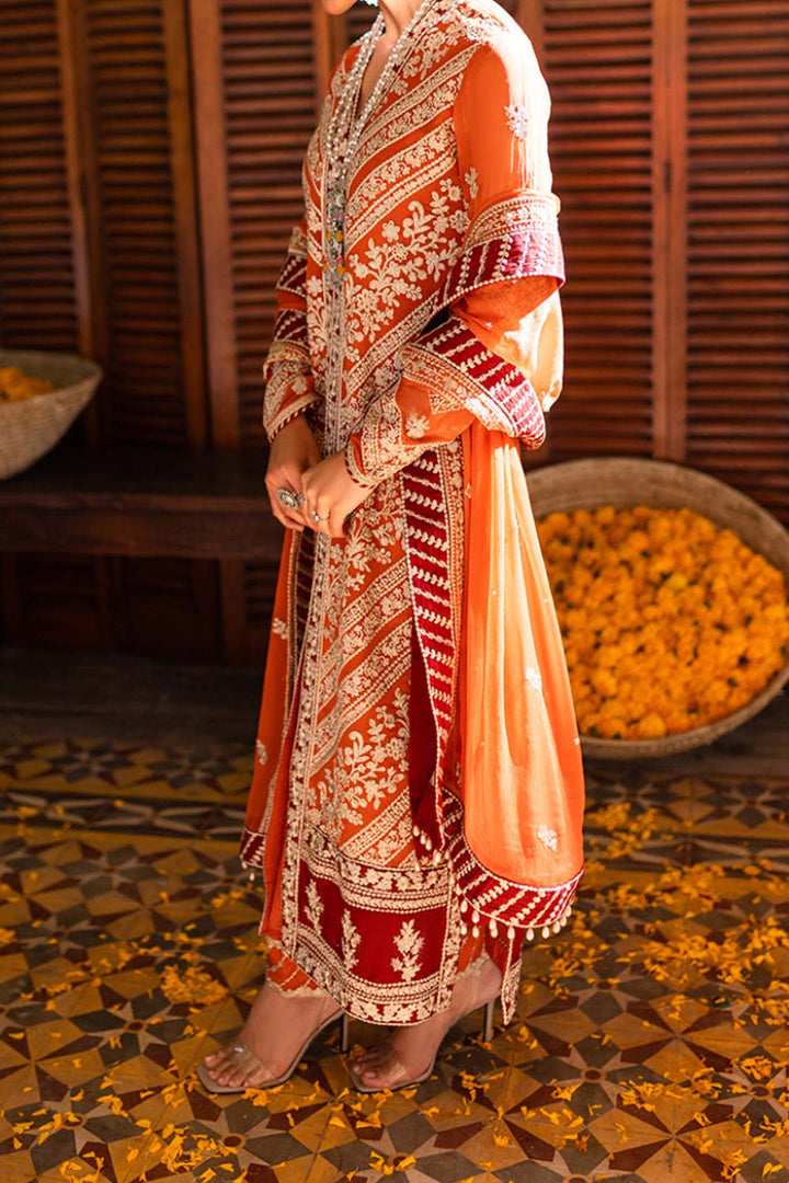 - Embroidered Rawsilk Front & Back Daman: 2 meters
