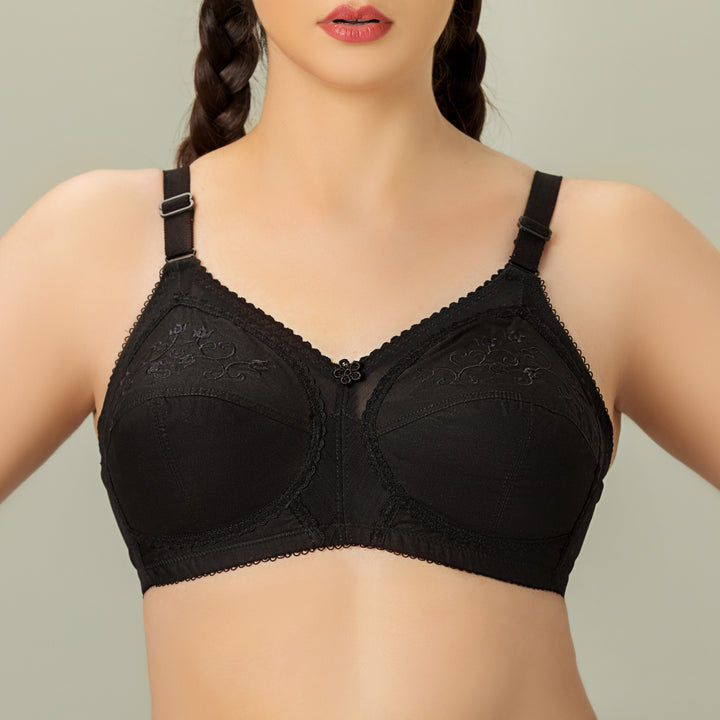 - Highly supportive three-part cup design non-wired bra with fine Embroidery in Cotton fabric.