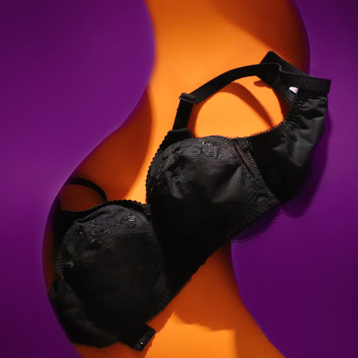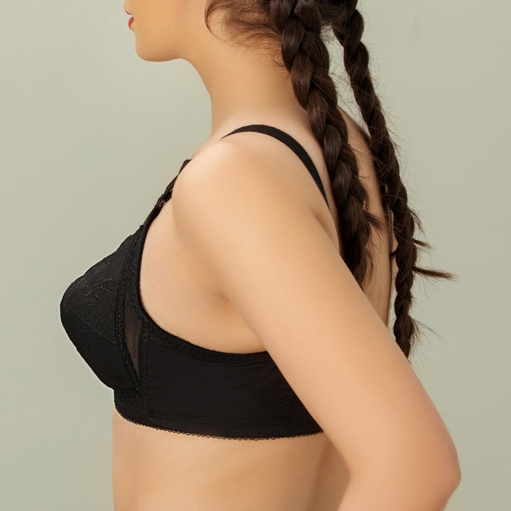 Bebelle - DORIA Cotton, Cotton Embroidered Unpadded Control Bra - BLACK