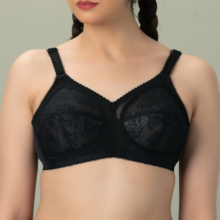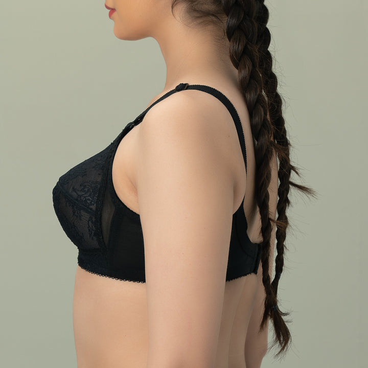 Bebelle - DORIA Lace, Soft Lace Unpadded Control Bra - BLACK