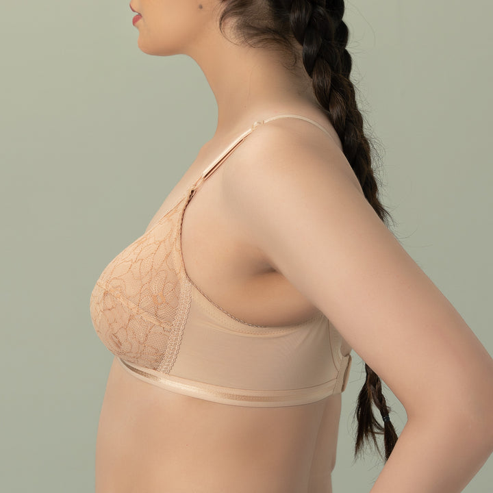 - Exceptional comfortable, Highly supportive & functional Crossover non-wired bra from the Modern Lace Control collection. - A Perfect fit for fuller cup sizes. - Comfortable Power net wings for extra support. *Lace design may vary from pictures Straps, Hooks & Eye: Adjustable and comfortable wide straps Hook-and-eye fastener for optimum support with 2 & 3 width adjustments Fabric & Details: All-over lace fabric Power net on wings for high control & support Non-allergic, long-lasting plastic hardware Bra Cup: B