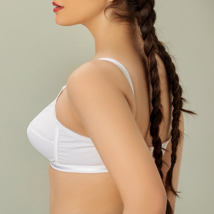 Bebelle - XCLence, Cotton embroidered Unpadded Crossover Bra - WHITE