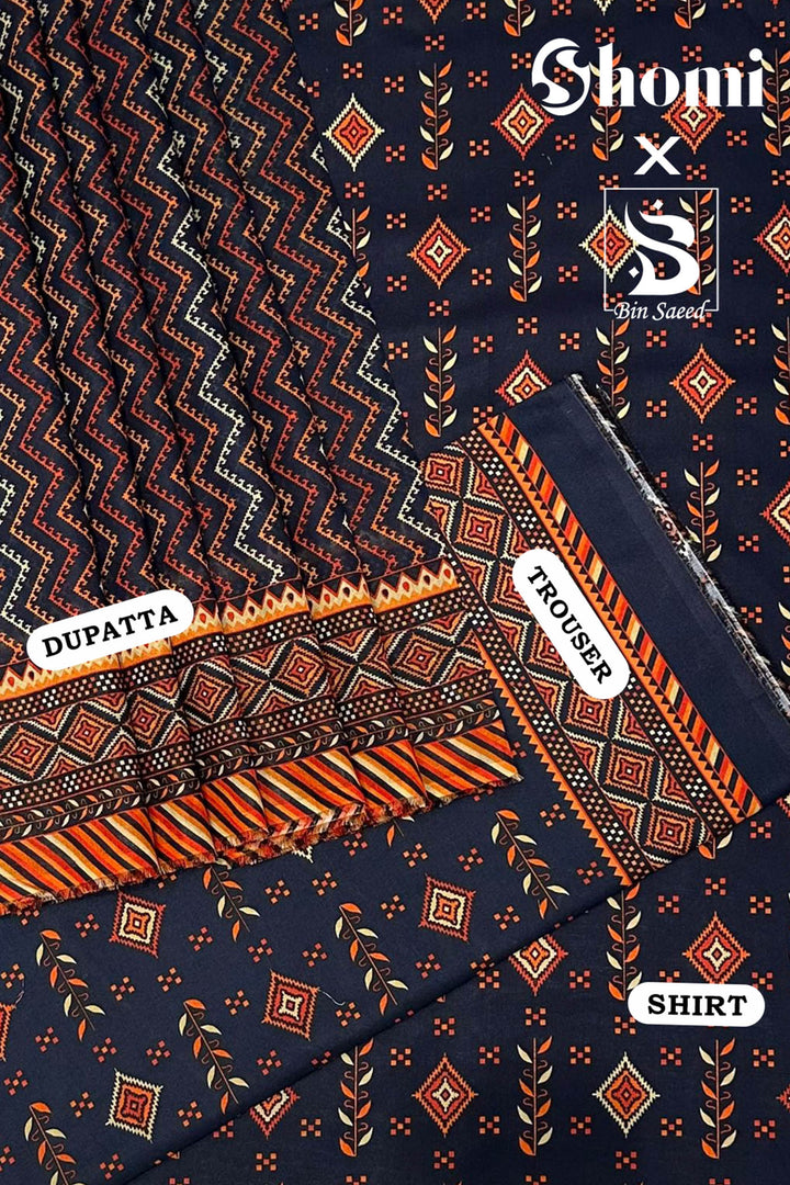 Bin Saeed 3 Piece Unstitched Printed Lawn Edition'01 Collection'2024-RDL-08-Blue