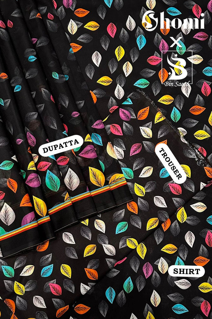 Bin Saeed 3 Piece Unstitched Printed Lawn Edition'01 Collection'2024-RDL-09-Black