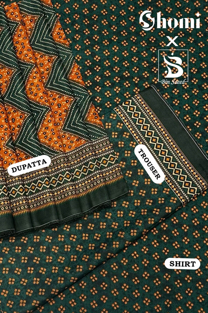 Bin Saeed 3 Piece Unstitched Printed Lawn Edition'01 Collection'2024-RDL-25-Green
