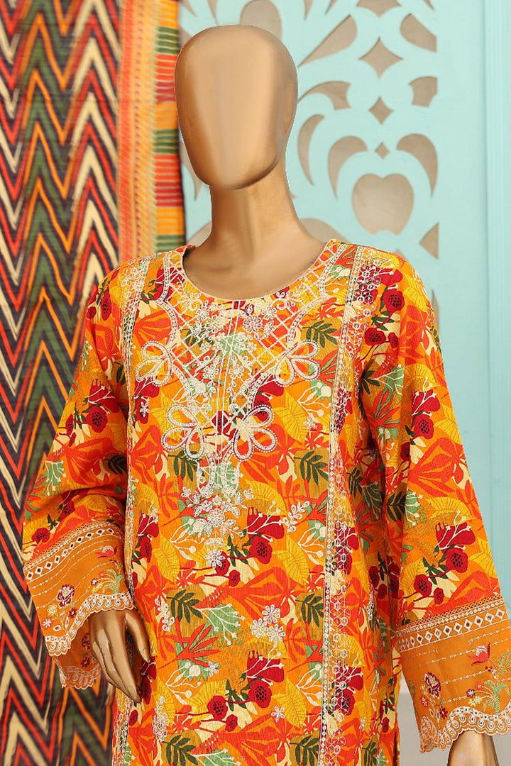 Bin Saeed Stitched 3 Piece Chikankari Emb Khaddar Collection'2024-WK-1113-Multi