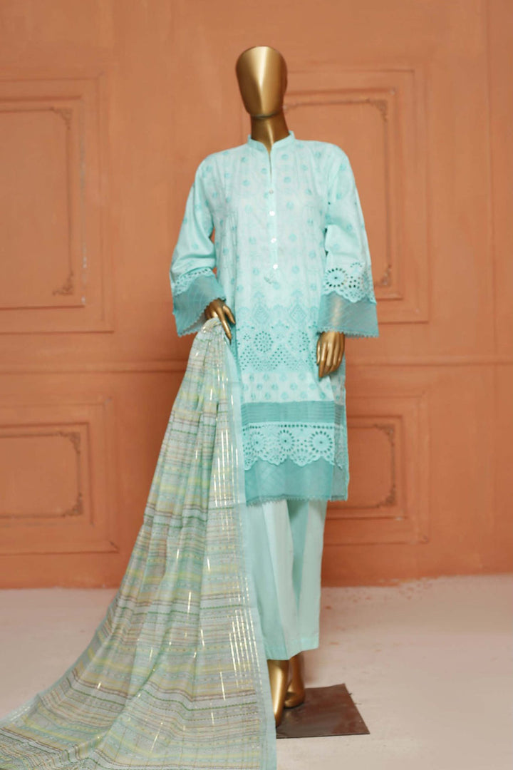 Bin Saeed Stitched 3 Piece Chikankari Lawn Collection'2023-SMLSTF-33-Ferozi