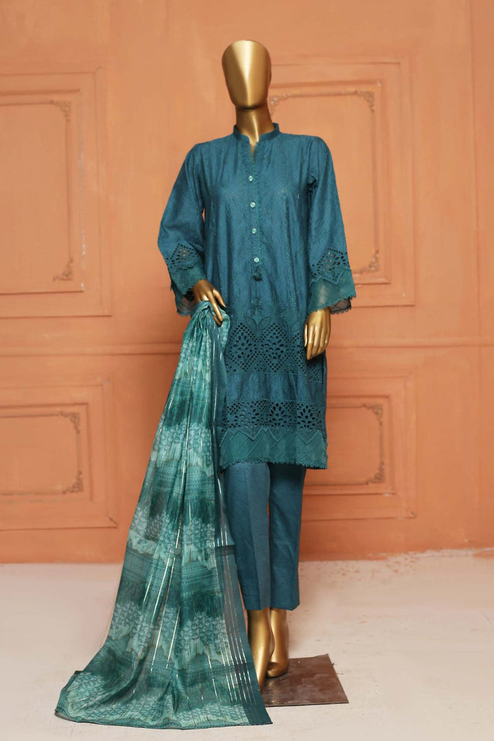 Bin Saeed Stitched 3 Piece Chikankari Lawn Collection'2023-SMLSTF-46-Green