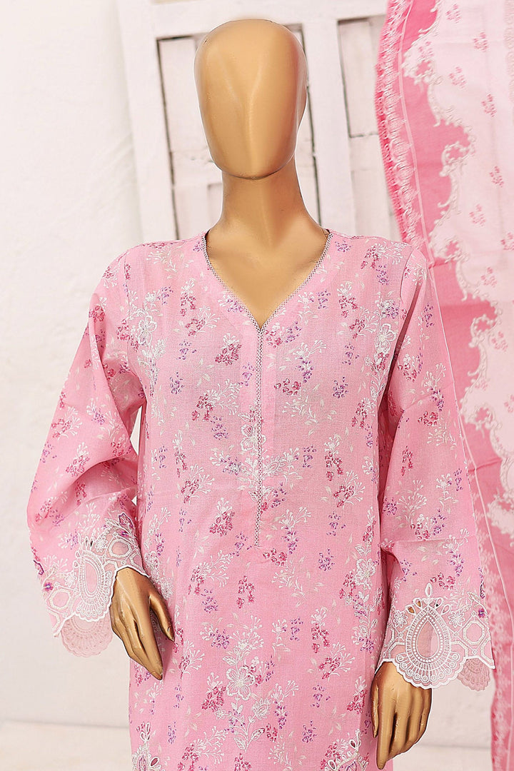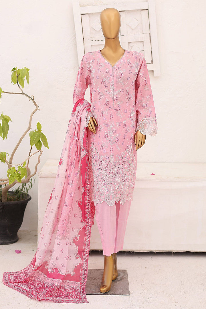 Bin Saeed Stitched 3 Piece Cutwork Emb Lawn Collection'2024-SM-656-Pink