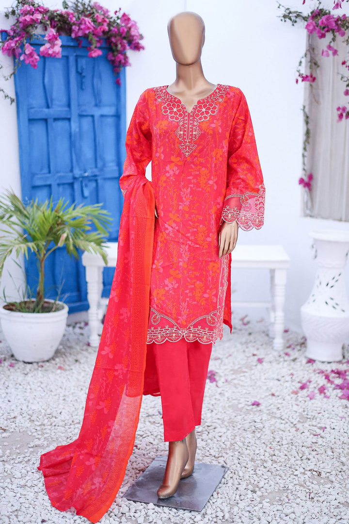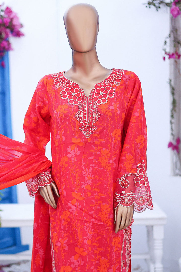 Bin Saeed Stitched 3 Piece Cutworkari Emb Lawn Vol-04 Collection'2024-SM-755-Red