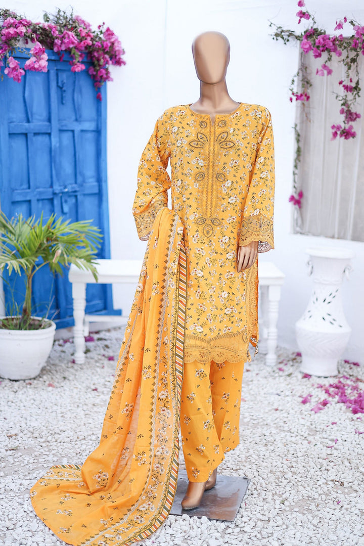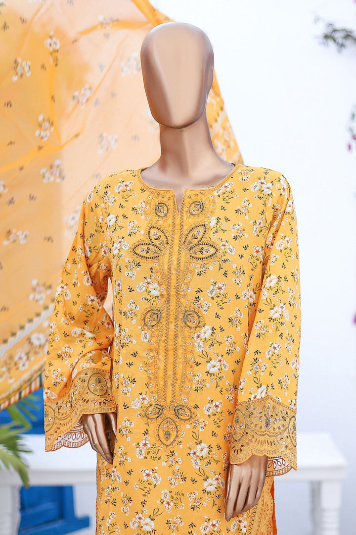 Bin Saeed Stitched 3 Piece Cutworkari Emb Lawn Vol-04 Collection'2024-SM-756-Yellow