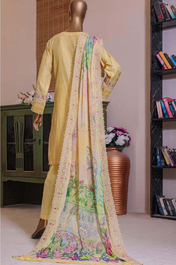 Bin Saeed Stitched 3 Piece Dhagga Kari Summer Collection'2023-DZ-03-B-Lemon
