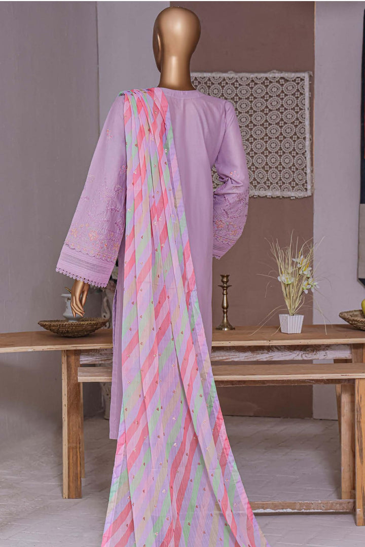 Bin Saeed Stitched 3 Piece Dhagga Kari Summer Collection'2023-ZDS-014-A-L,Purple
