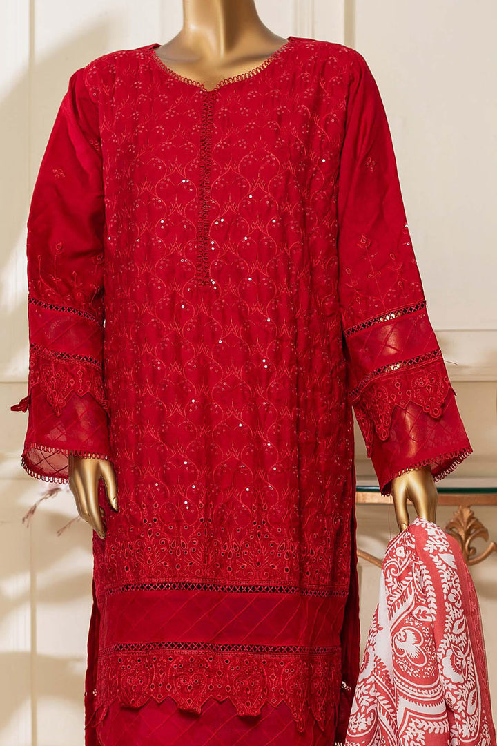 Bin Saeed Stitched 3 Piece Dhanak Winter Shawl Vol-03 Collection'2022-SM-010-Red