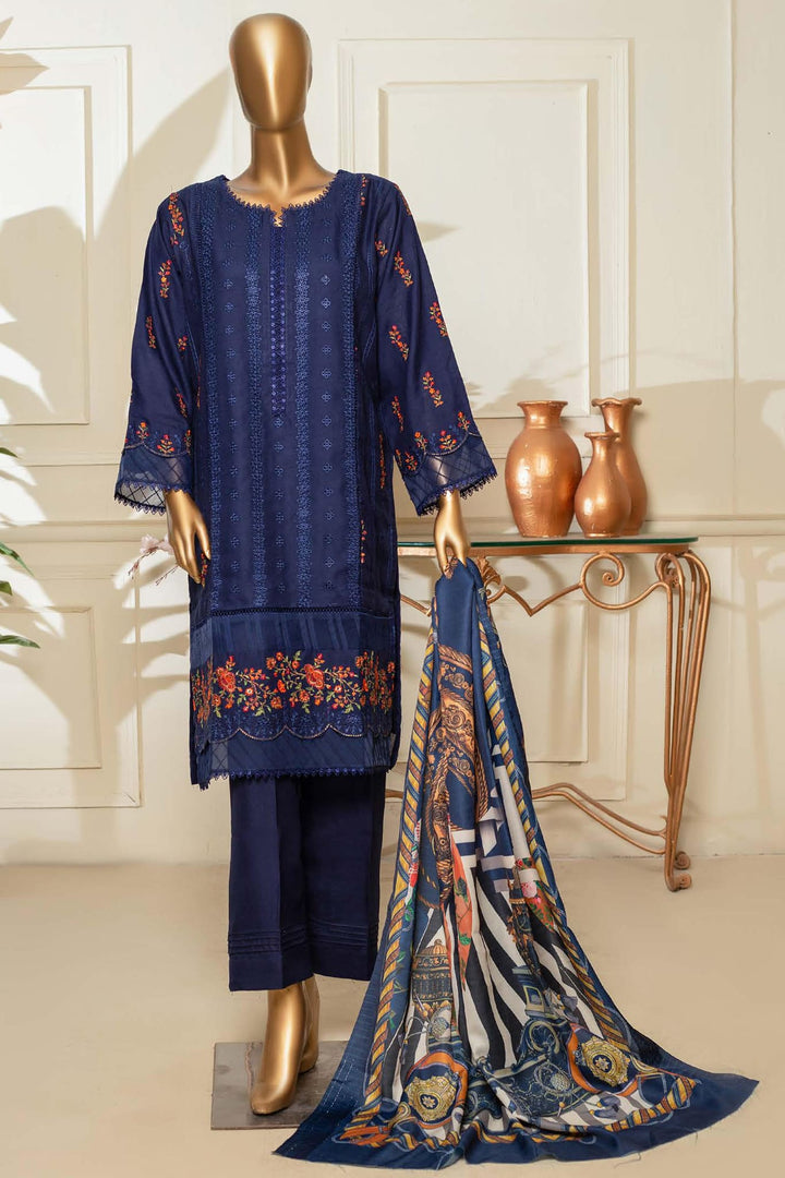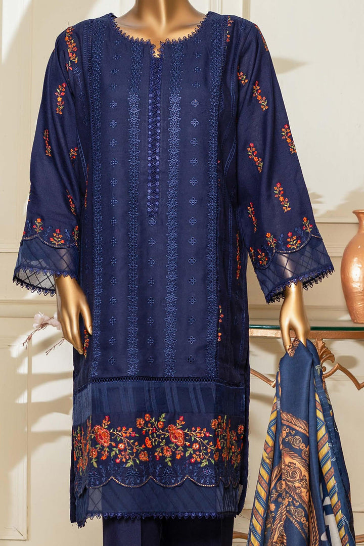 Bin Saeed Stitched 3 Piece Dhanak Winter Shawl Vol-03 Collection'2022-SM-019-Blue