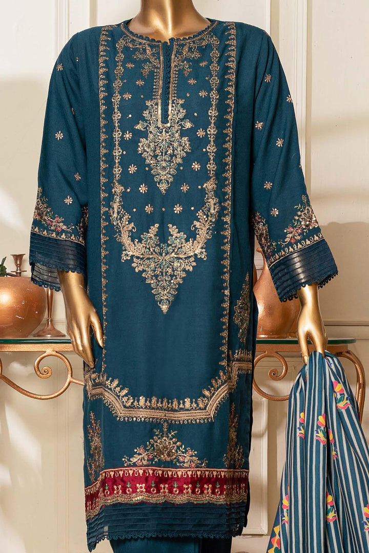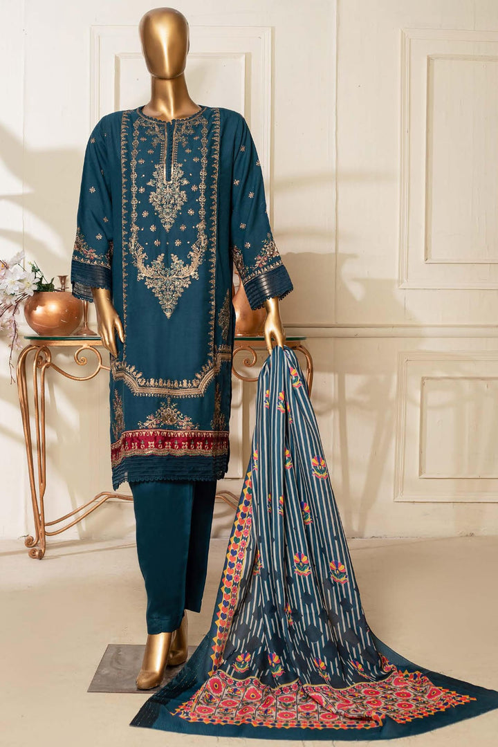 Bin Saeed Stitched 3 Piece Dhanak Winter Shawl Vol-03 Collection'2022-SM-038-D.Blue