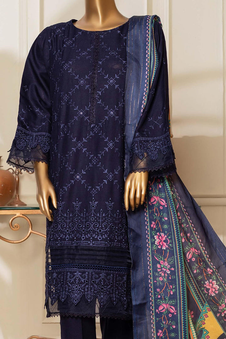 Bin Saeed Stitched 3 Piece Dhanak Winter Shawl Vol-03 Collection'2022-SM-08-Blue