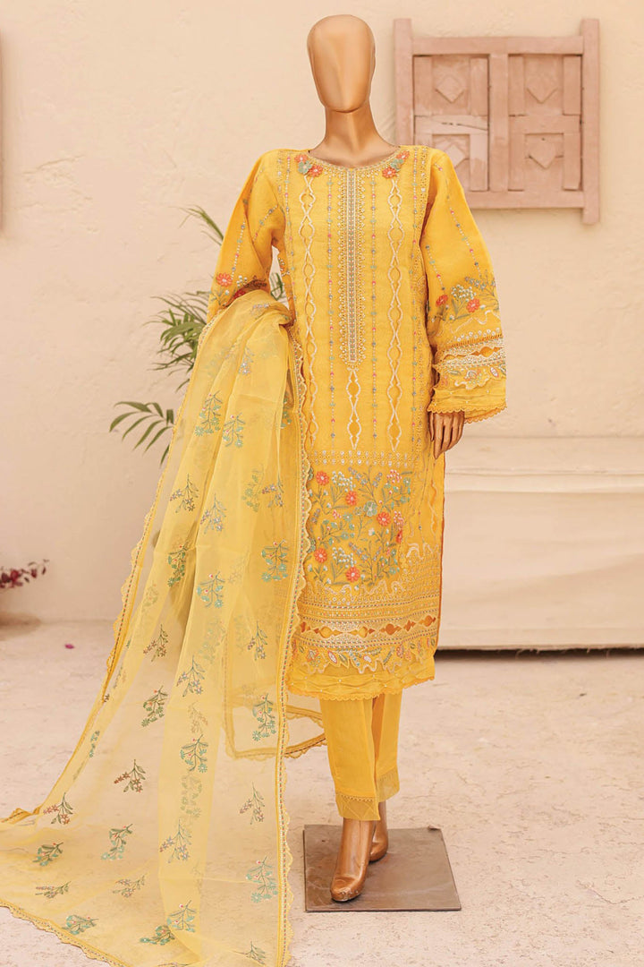Bin Saeed Stitched 3 Piece Emb Fancy Festive Ramadan Collection'2024-ZEF-480-Yellow