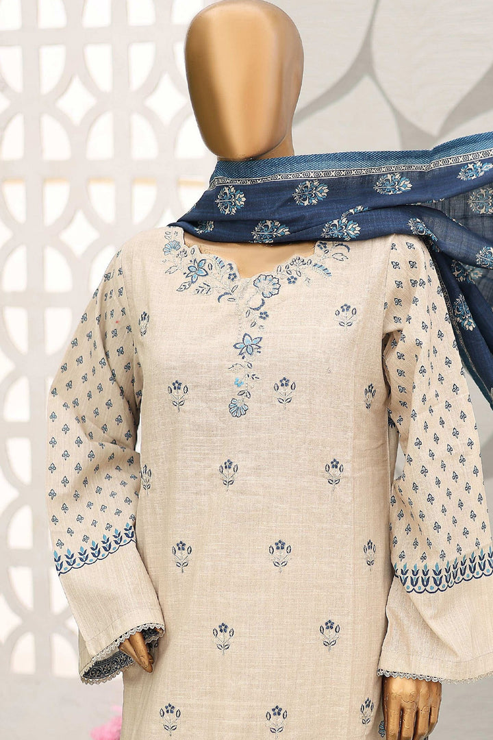 Bin Saeed Stitched 3 Piece Emb Khaddar Winter Collection'2024-WKF-933-Off White
