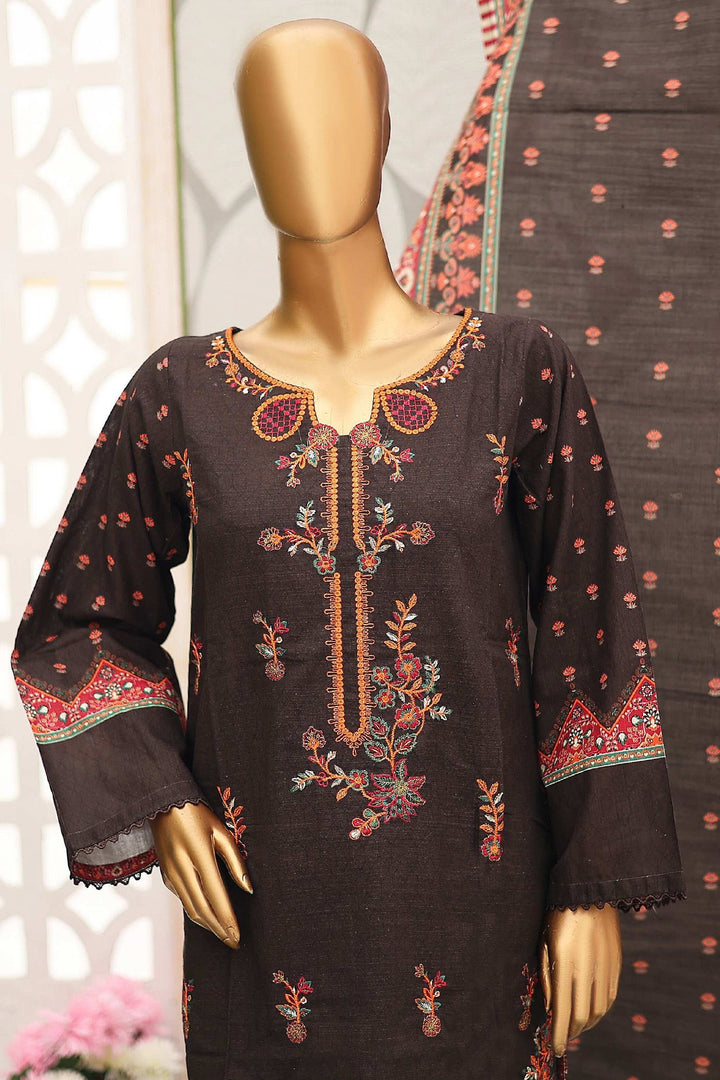 Bin Saeed Stitched 3 Piece Emb Khaddar Winter Collection'2024-WKF-934-Dark Brown