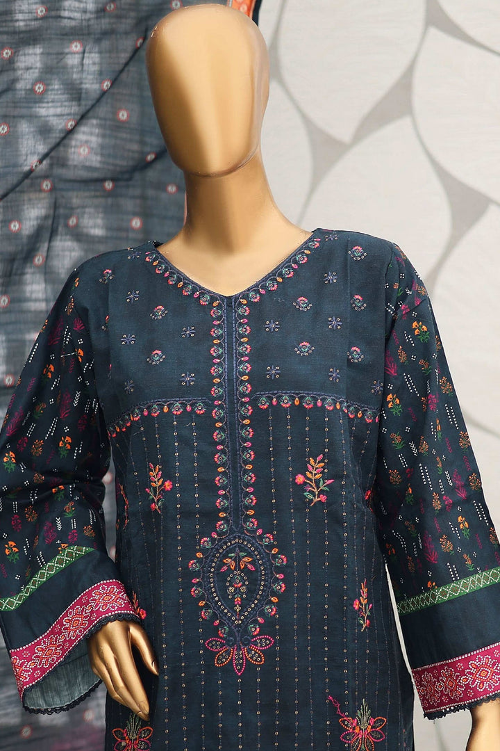 Bin Saeed Stitched 3 Piece Emb Khaddar Winter Collection'2024-WKF-936-Navy Blue