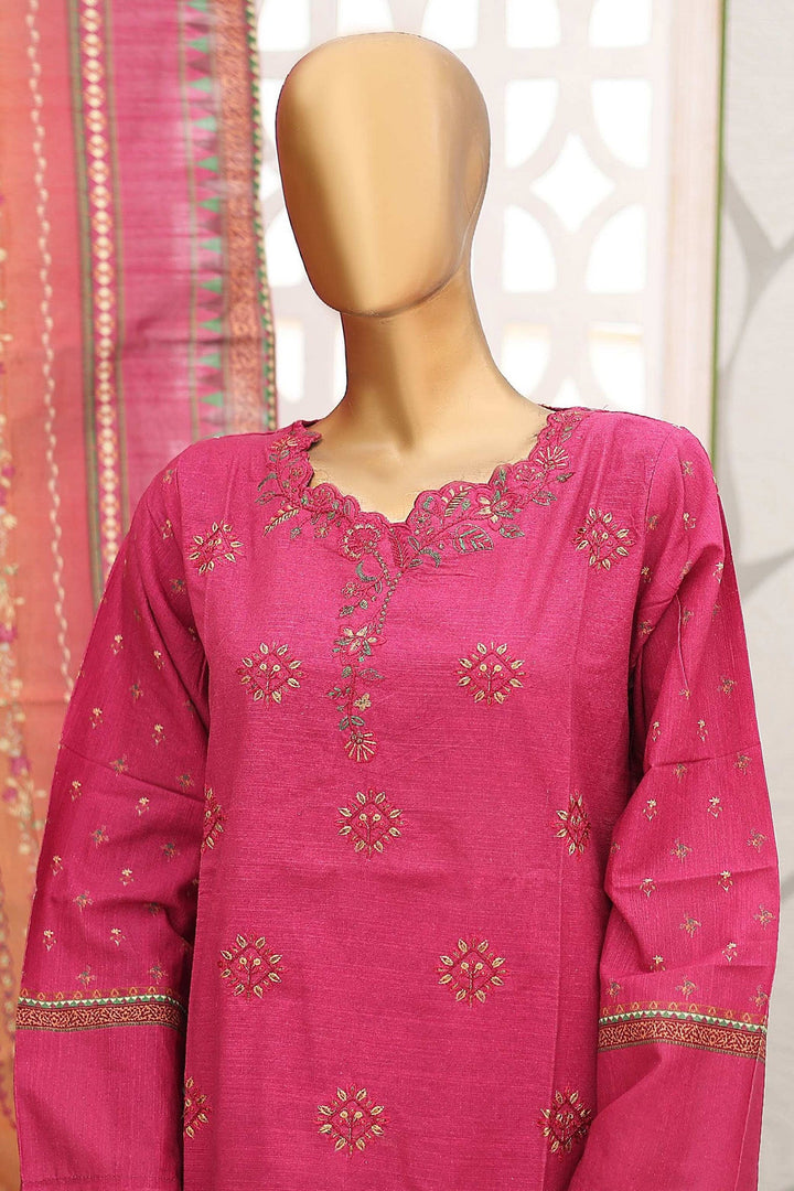 Bin Saeed Stitched 3 Piece Emb Khaddar Winter Collection'2024-WKF-942-Magenta
