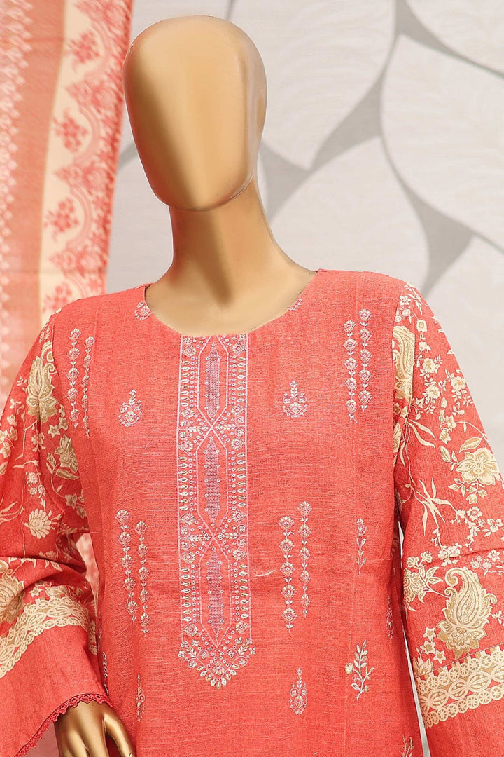 Bin Saeed Stitched 3 Piece Emb Khaddar Winter Collection'2024-WKF-945-Orange