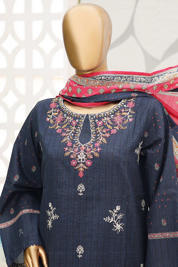 Bin Saeed Stitched 3 Piece Emb Khaddar Winter Collection'2024-WKF-946-Navy Blue