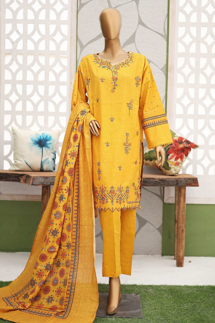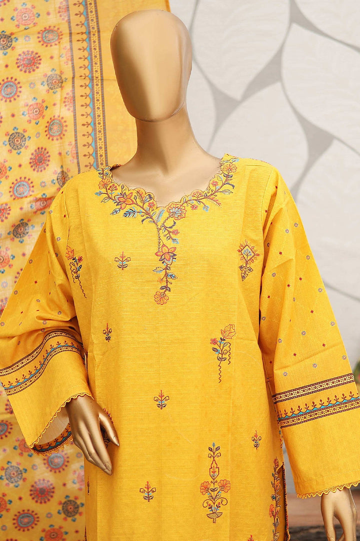 Bin Saeed Stitched 3 Piece Emb Khaddar Winter Collection'2024-WKF-951-Yellow